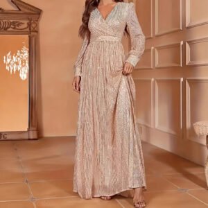 Be the first to review “Elegant Dinner Sequined Long Sleeve V-neck High Waist Evening Dress”