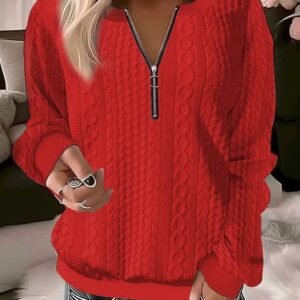 Be the first to review “European And American Autumn And Winter New Women’s Long Sleeve Solid Color And V-neck Zipper T-shirt”