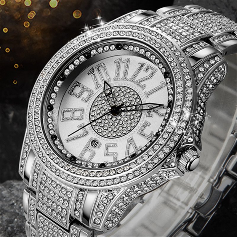 Men's Diamond Fashion Alloy Strap Date Quartz Watch