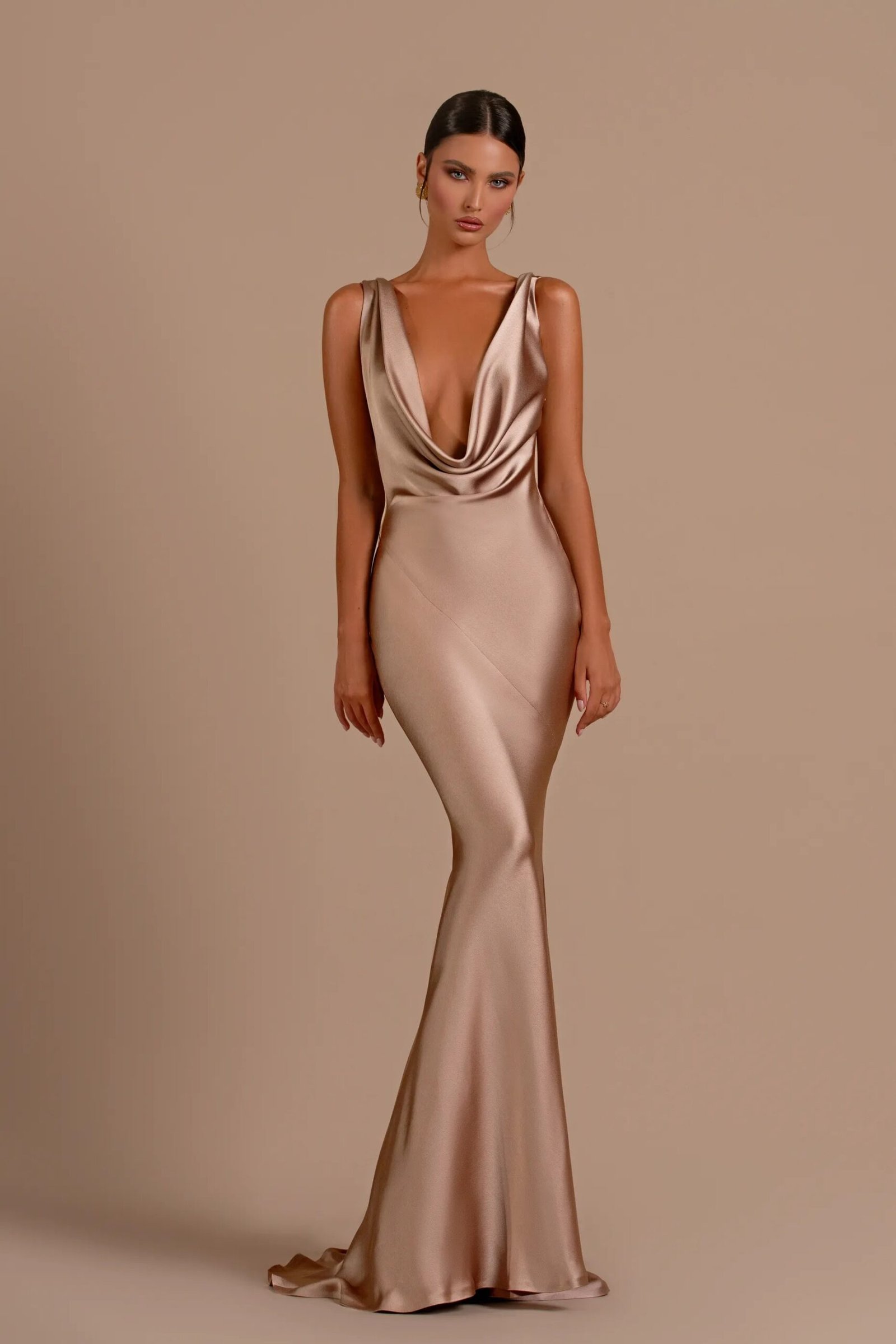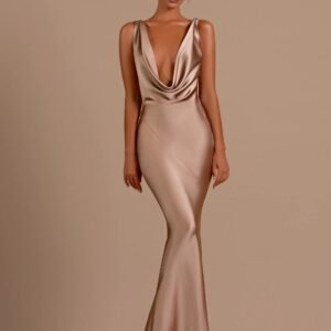 - Features:Mermaid Prom Dresses for Teens,Silk Satin Bridesmaid Dresses for Women,Curvy Cowl Neck Evening Party Dresses for Women,Deep V Neck Formal Dress for Women Elegant Classy,Sleeveless Long Bridal Dress for Wedding