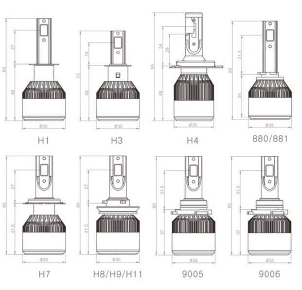 H7 style2pcs, H8 H9 H11 style, H1 style, 9005 style, H4 style, H3 style, 9012 style, 5202 style, H13 style, 880 881 style, 9004 style, H7 style, 9007 style, 9006 style