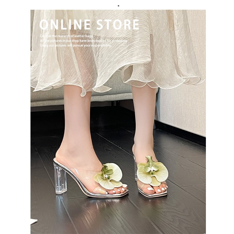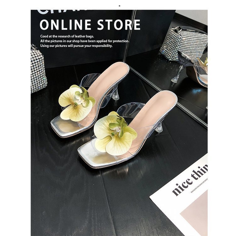 New Flower Decoration Export Large Size Women's High Heel Sandals