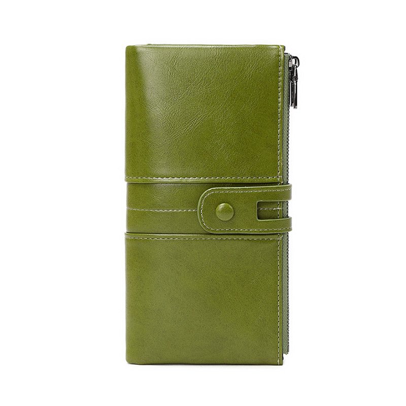 Oil Wax Leather Double Zipper Long European And American New Retro Anti-theft Swiping Women’s Wallet