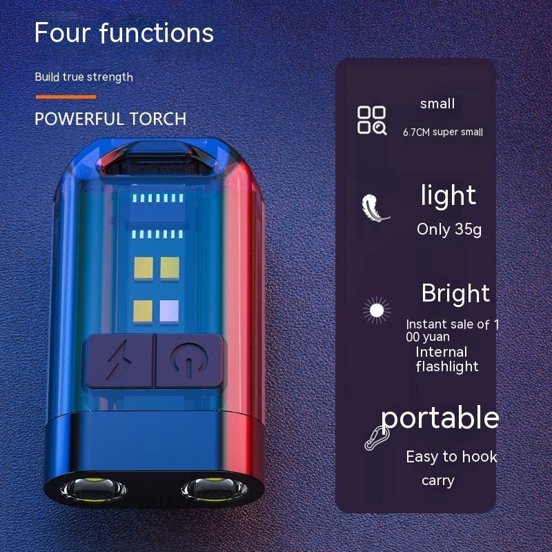 Long press: auxiliary light white light – red light – red light exploding flash – red blue exploding flash – purple light