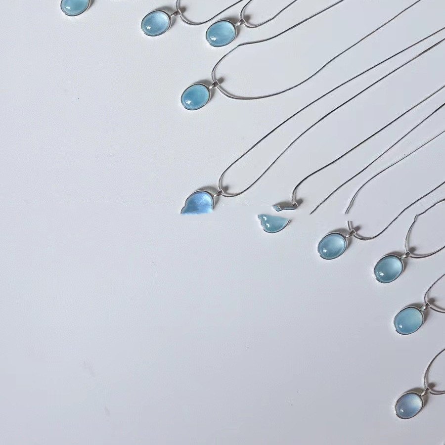 Color: Oval aquamarine necklace (white silver)