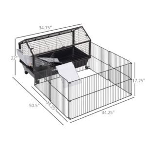PawHut Small Animal Playpen Cage with Rolling Casters, Water Bottle, 35″L