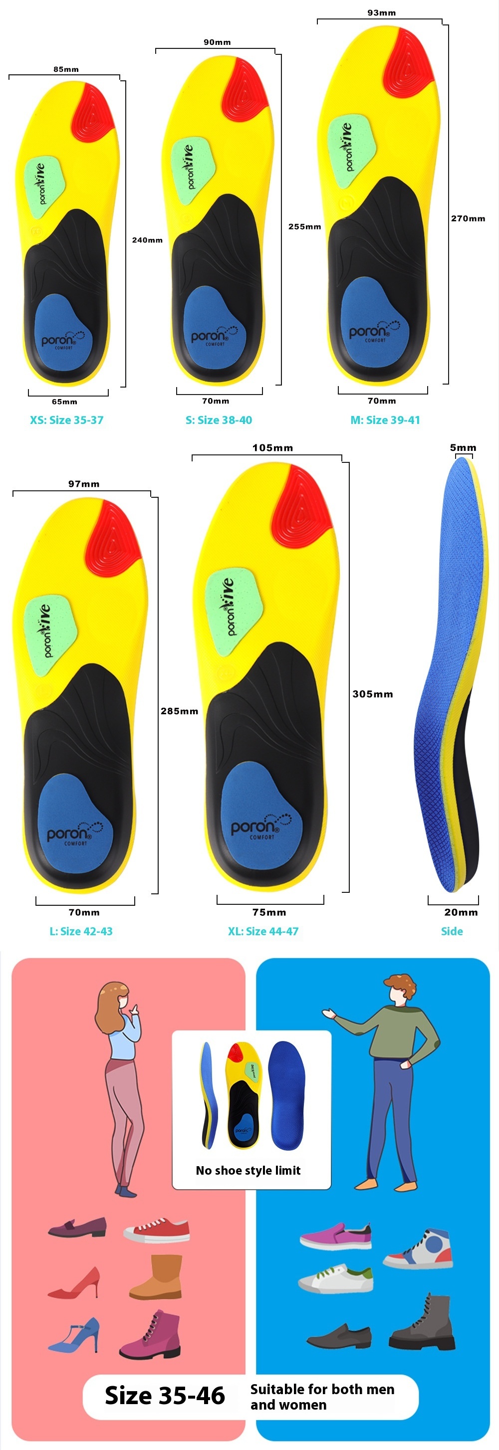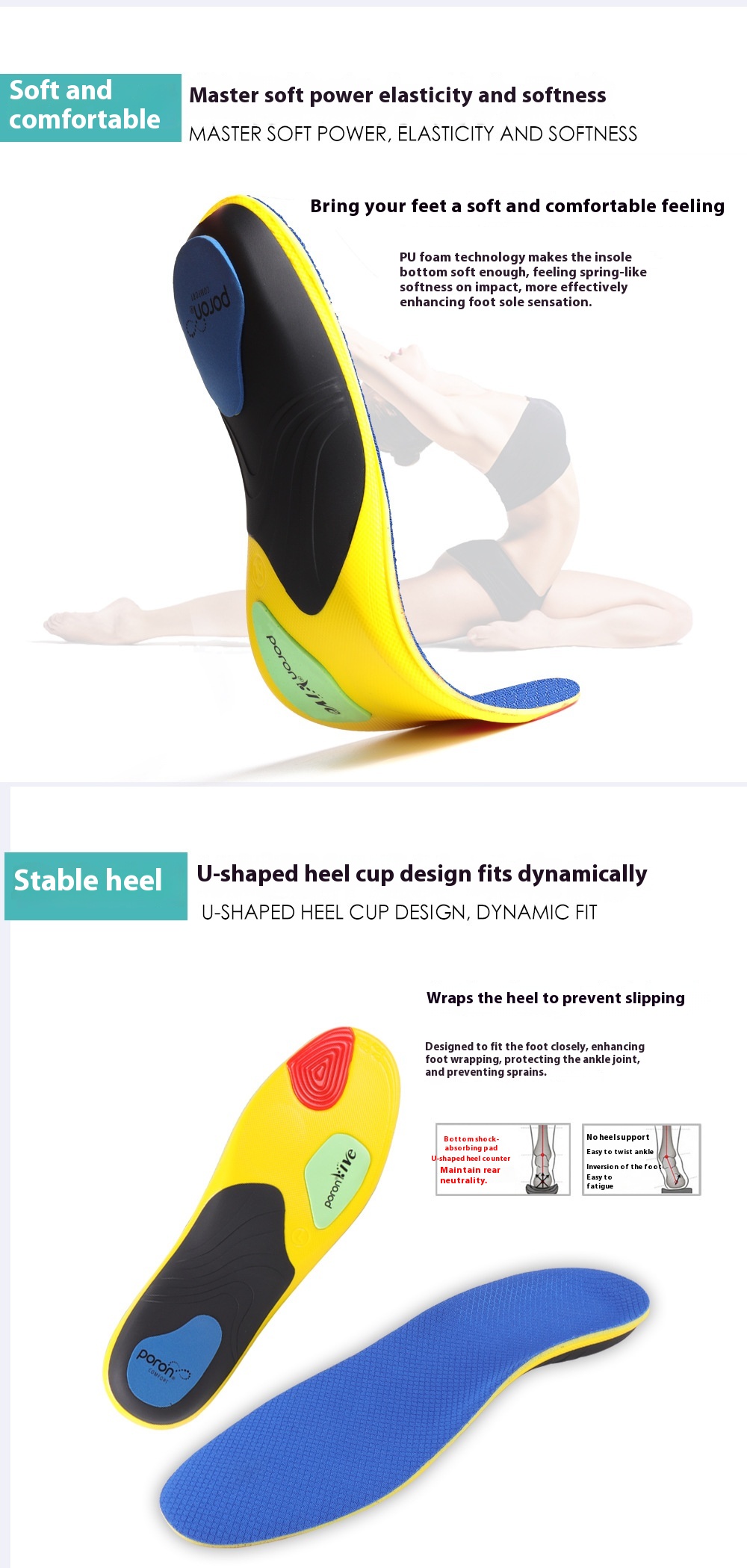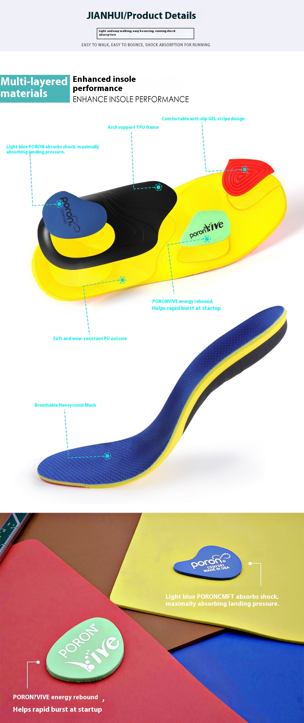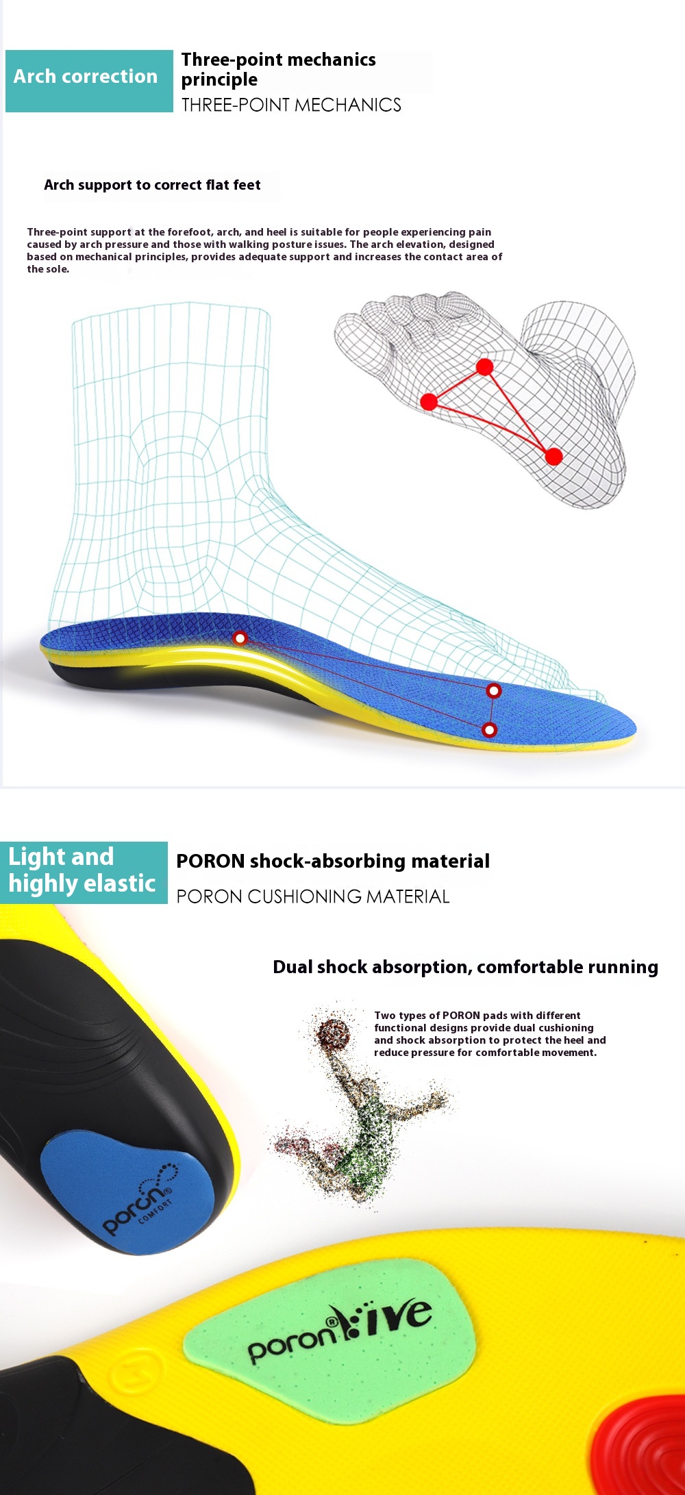 Style: Poron high-elastic shock-absorbing insole