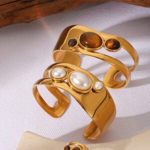 Be the first to review “Stainless Steel Inlaid With Natural Stone Tiger Eye Wide Face Bracelet”