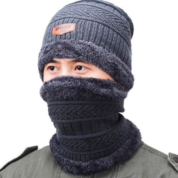 Winter Hat Men’s Warm Ear Protection Fleece Knitted Hat Thickened Scarf Two-piece Set