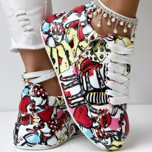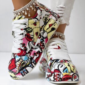 Be the first to review “Women’s Casual Round Toe Thick Sole Lace-Up Sneakers, Random Print Design, Comfortable Sporty Shoes For Daily Wear”